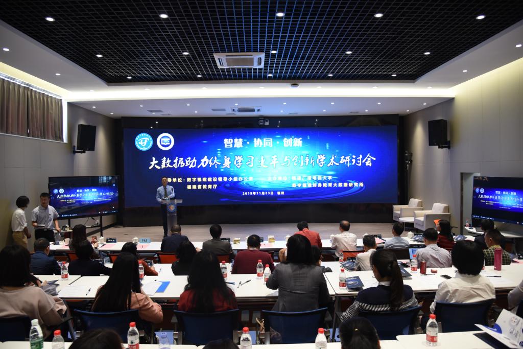 11月23日下午,值福建广播电视大学建校40周年之际,由福建广播电视大学、数字福建终身教育大数据研究所主办的“智慧·协同·创新,大数据助力终身教育变革与创新”学术论坛在福建广播电视大学左海校区举行。数字福建终身教育大数据研究所所长、福建广播电视大学副校长沈光辉,数字福建建设领导小组办公室副处长刘明杰,福建省民政厅副巡视员郑成林,基层政权和社区治理处副调研员林振,古田县人民政府副县长李晓霞,复旦大学计算机科学技术学院学术委员会主任,福州大数据首席科学家朱扬勇教授,台湾金门社区大学校长李沛庆教授,上海教育科学研究院终身教育研究室副主任国卉男博士,北京飞利信大数据研究院技术总监胡浩等领导和专家,以及来至全国各地的专家、学者、合作企业代表参加了论坛。论坛由数字福建终身教育大数据研究所副所长吴盛雄主持。