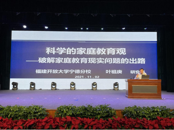 宁德广播电视大学(宁德市社区大学)党委书记、校长叶祖庚在研讨会上分享了报告《科学的家庭教育观—破解家庭教育现实问题的出路》,指出了当代家庭教育的主要问题,分析了问题的主要成因,并提出了解决策略。
