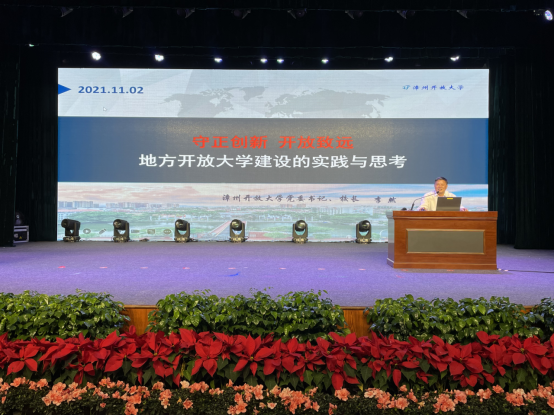 漳州开放大学党委书记、校长、研究员李然的报告《守正创新开放致远—地方开放大学建设的实践与思考》,以漳州开放大学为例从办学理念、实践探索以及思考和启示三个方面详细介绍了地方开放大学的特色和经验。