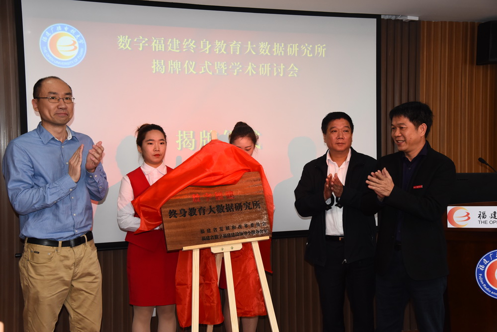4月10日上午,按照福建省发展和改革委员会关于启动建设首批数字福建大数据研究院(所)要求,“数字福建终身教育大数据研究所”揭牌仪式暨学术研讨会在福建广播电视大学桂山校区举行。党委书记陈兴炎、校长吴国荣,福建老年大学常务副校长张国茂,福建省教育厅职成处调研员刘会勇,福建省发展和改革委员会综合处郑彦翎等出席揭牌仪式。副校长、数字福建终身教育大数据研究所所长沈光辉主持仪式。