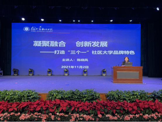 福州职业技术学院继续教育中心副主任、副研究员陈晓凤以《凝聚融合创新发展—打造“三个一”社区大学品牌特色》为题,介绍了福州市社区大学采用“一平台、一核心、一重点”打造社区大学品牌特色的经验。